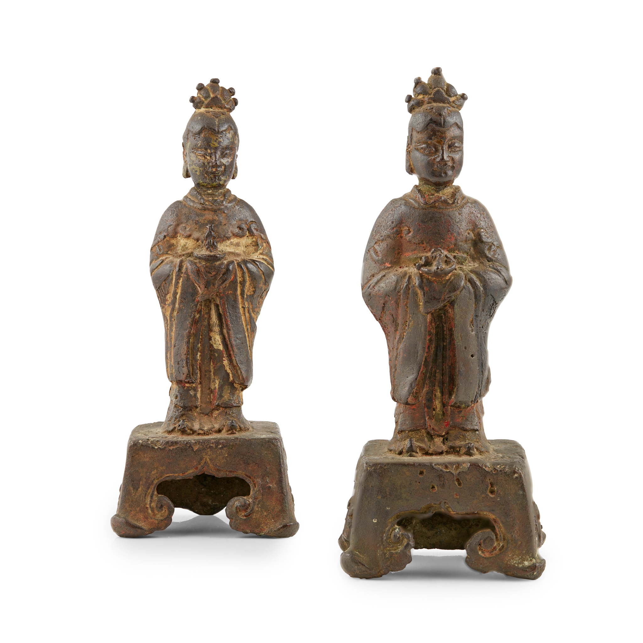 [FROM THE COLLECTION OF BENJAMIN EVERETT GILL] TWO BRONZE FIGURES OF FEMALE ATTENDANTS