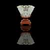 carved in openwork as a stylized butterfly with detailed body and spread wings, with flowers between antennas, the stone of white translucent colour with cloudy inclusions, on a bespoke wooden stand