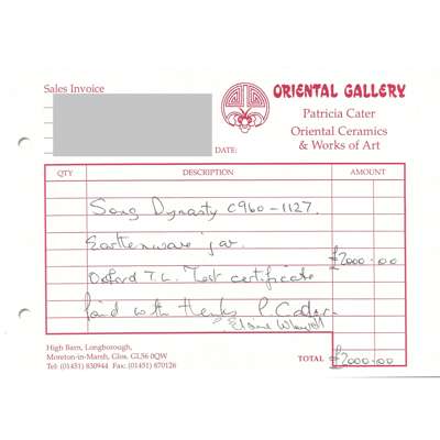 Private Scottish collection, North Berwick, has been collecting Asian ceramics for 25 years. Acquired from Oriental Gallery, Patricia Cater Oriental Ceramics & Works of Art, with an undated original receipt.
