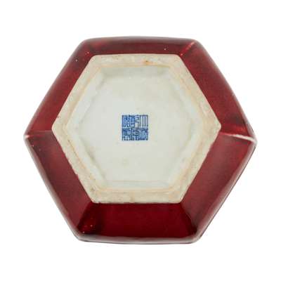 CHINESE COPPER RED GLAZED HEXAGONAL VASE