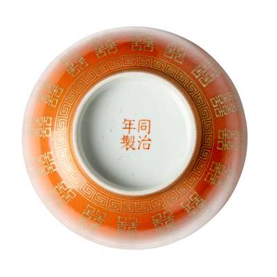 CORAL-RED-GROUND GILT-DECORATED 'MARRIAGE' BOWL