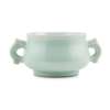 of archaistic gui form, the gently rounded body supported on a short foot and flanked by a pair of handles, covered overall with a thick pale celadon glaze leaving only the foot ring unglazed
