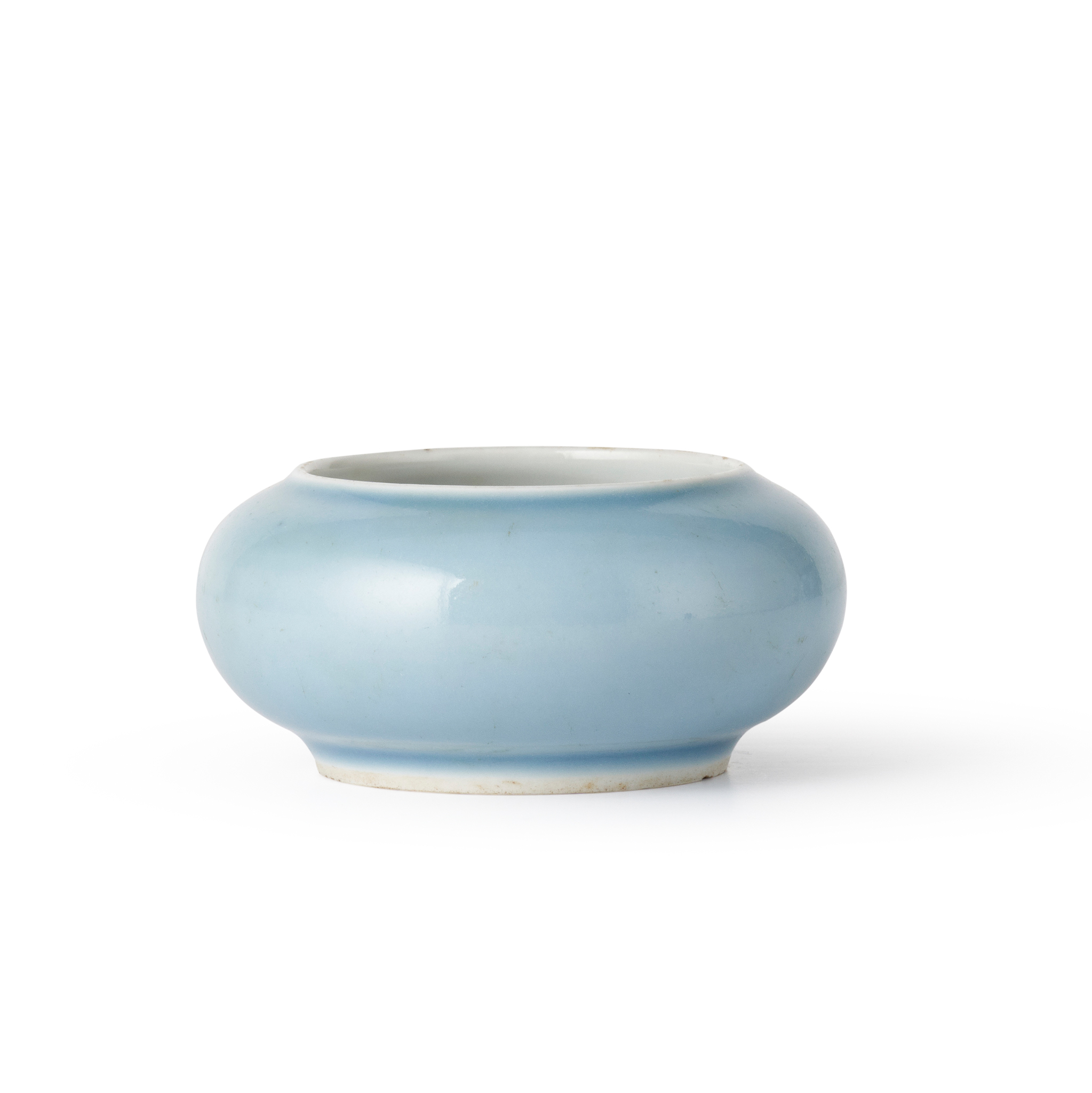 the squatted globular body covered on the exterior with sky-blue glaze, the base inscribed with a six-character Guangxu mark