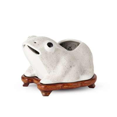 十九至二十世紀 白瓷蛙形大花盆 帶隨形木座