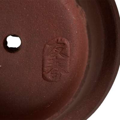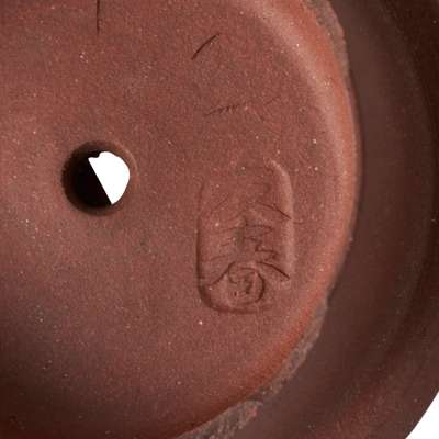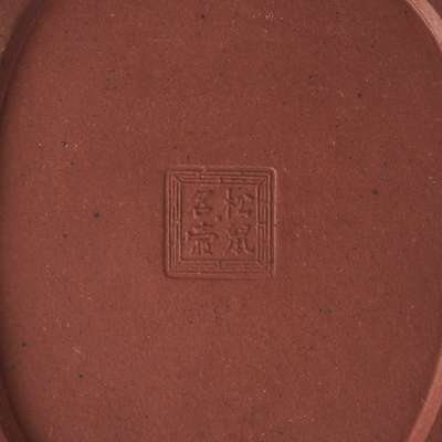 comprising: two moulded with two cylindrical forms with one elevated higher than the other, tied with a raised ribbon at the waist, the larger with underside of its cover signed ‘You Chun’; and one rounded rectangular form with moulded ‘grapes with squirrels’ motif, the cover with ‘He Ji’ and base of the pot with ‘Songshu Minghu’ marks (3)