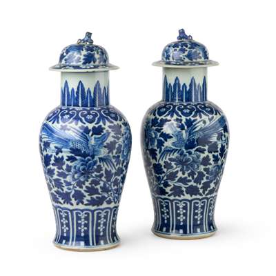 十九至二十世紀 青花鳳穿牡丹紋蓋瓶(一對)