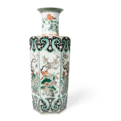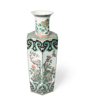 清 五彩花果紋六方大瓶