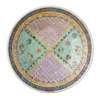 the interior quartered by a cross centred with ‘shou’ medallion, two panels with pink ground scattered with flowers, the other with turquoise ground, yellow flowers and floral roundels, all in ruyi and key-fret bands