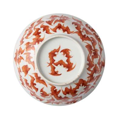 礬紅彩百蝠紋淺碗