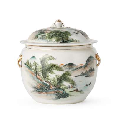 FAMILLE VERTE 'LANDSCAPE' LIDDED POT