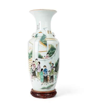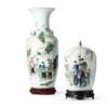 二十世紀 洪步余款 粉彩十里揚州時裝人物大瓶及蓋罐 帶木座(共兩件)