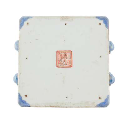 清 道光款 粉彩纏枝蓮紋四繫委角方洗