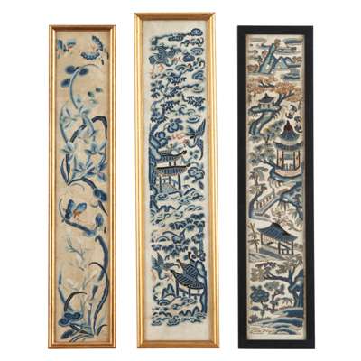 清 各式刺繡花鳥人物紋挽袖 鏡框(共六件)