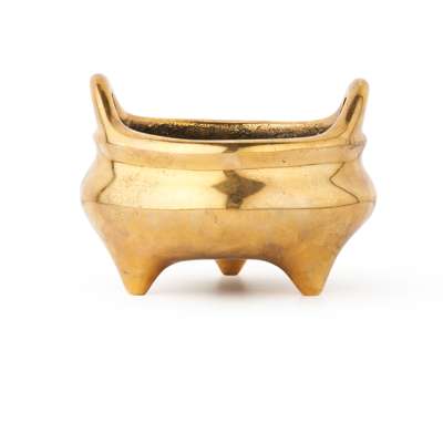 十九至二十世紀 宣德四字雙龍款 銅鑄三足沖耳爐