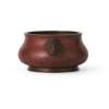 of compressed globular form, flanked by a pair stylised elephant-head handle, the base cast with a three-character mark in a recessed rectangular panel