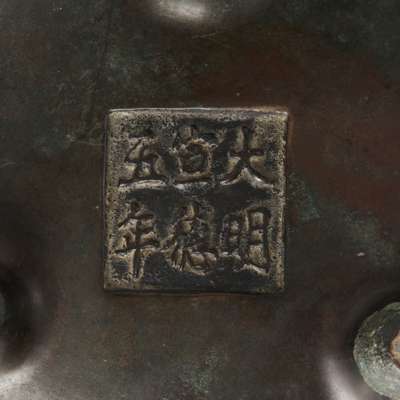 二十世紀 「大明宣德五年」款 銅鑄雙耳三足爐