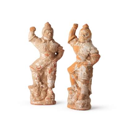TWO TERRACOTTA WARRIOR GUARDIAN FIGURES