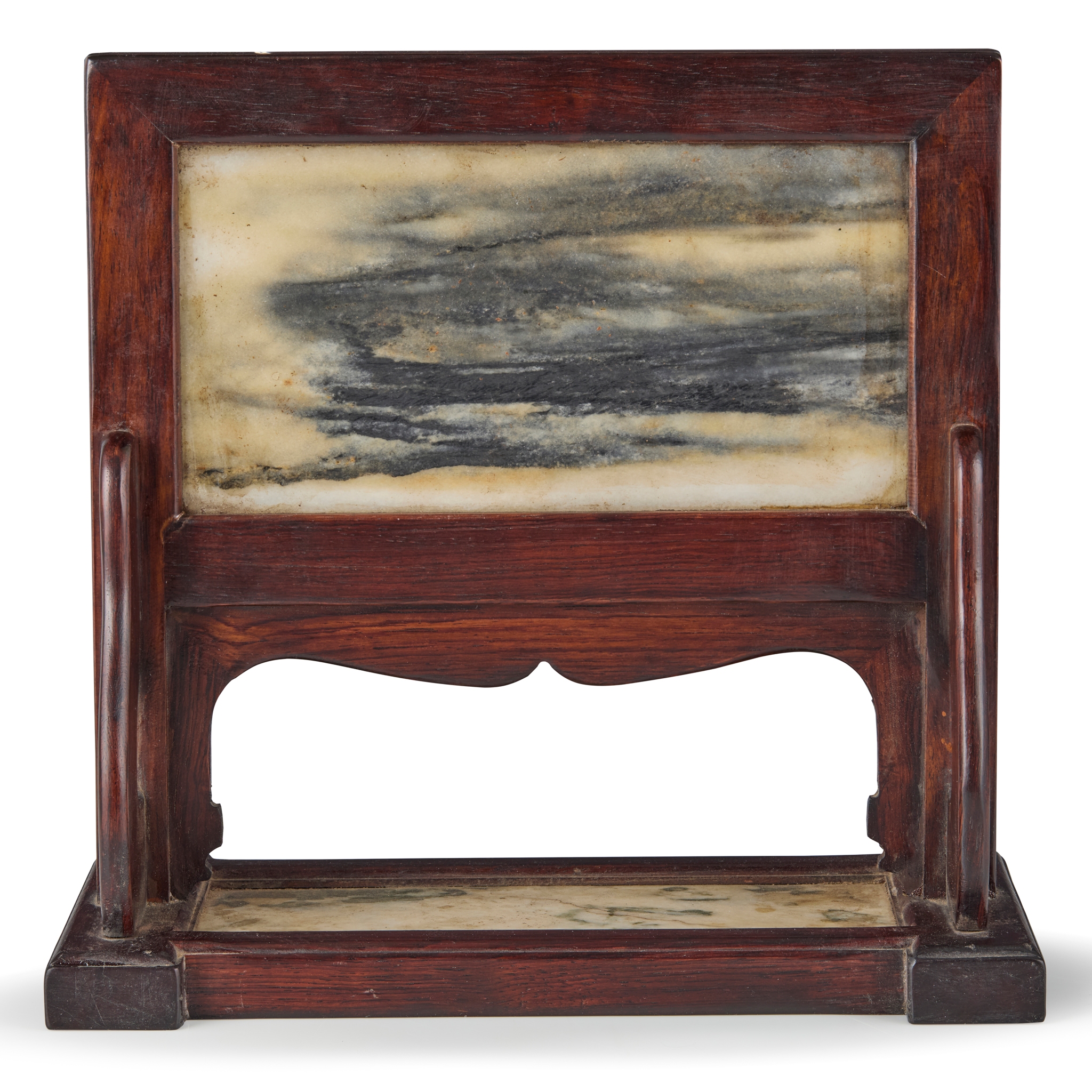 [PRIVATE ENGLISH COLLECTION, ENGLAND] CHINESE HARDWOOD MARBLE-INSET TABLE SCREEN