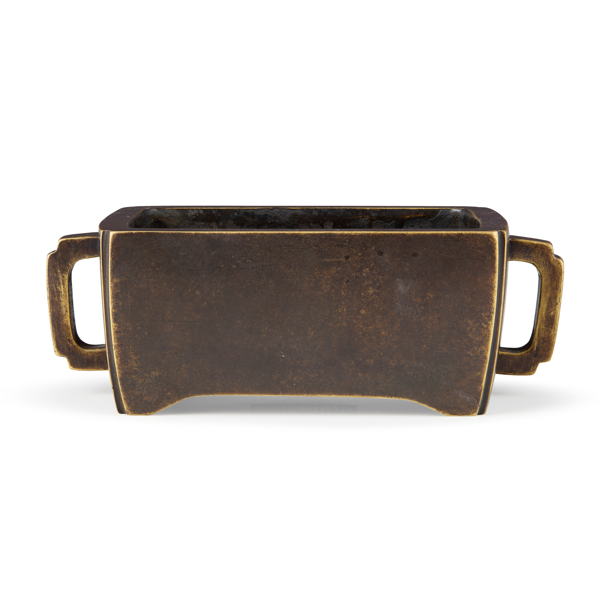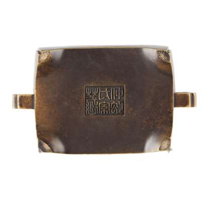 [PRIVATE ENGLISH COLLECTION, ENGLAND] CHINESE BRONZE RECTANGULAR HANDELED CENSER