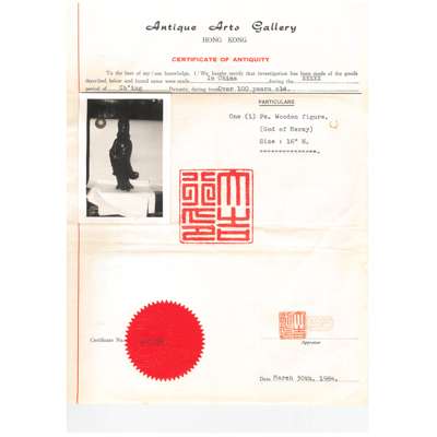 購自香港帝寶佛閣,1984年3月30日,含古董證書。