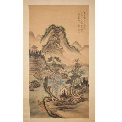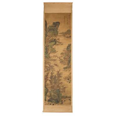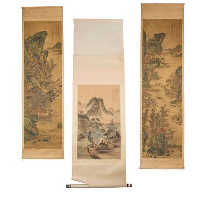 楊晉款 山水圖 絹本設色 立軸兩幅 及 張之萬款 山水圖 紙本設色 立軸(共三幅)