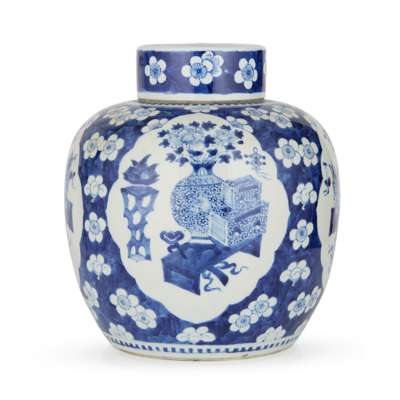 ![[PRIVATE SCOTTISH COLLECTION, EDINBURGH] CHINESE BLUE AND WHITE 'HUNDRED ANTIQUITIES' GINGER JAR WITH COVER](https://media.app.artisio.co/media/104cbde6-0d38-43cb-9e0f-bb721ef57bcf/inventory/745cdb4d-f90c-4f4f-92b7-d767ff774d3c/4aa2f859-3da8-4dba-b9c3-c0d4ac020594/0001_cNyzCk_original.jpg)