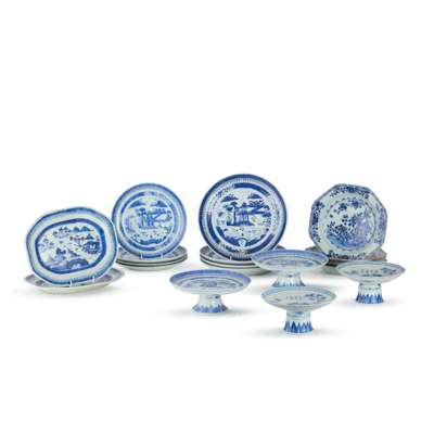 [PRIVATE SCOTTISH COLLECTION, EDINBURGH] GROUP OF EIGHTEEN CHINESE BLUE AND WHITE DISHES