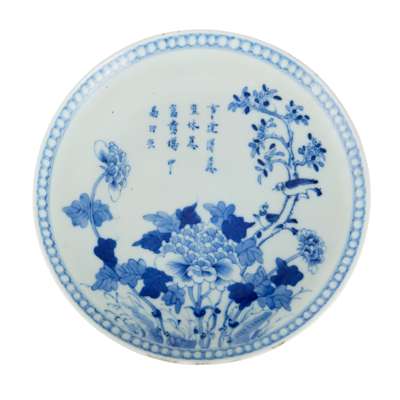 清 各式青花花卉、山水閣樓紋盤及高足供碟(共十八件)