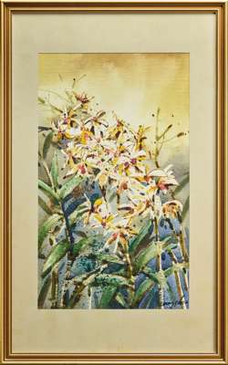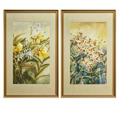 龚明金(馬來西亞,1945年生) 紙本水彩 胡姬花圖 鏡框(兩幅)