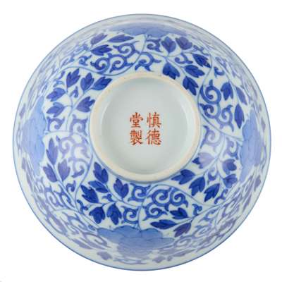 二十世紀 「慎德堂製」款 青花花卉紋碗