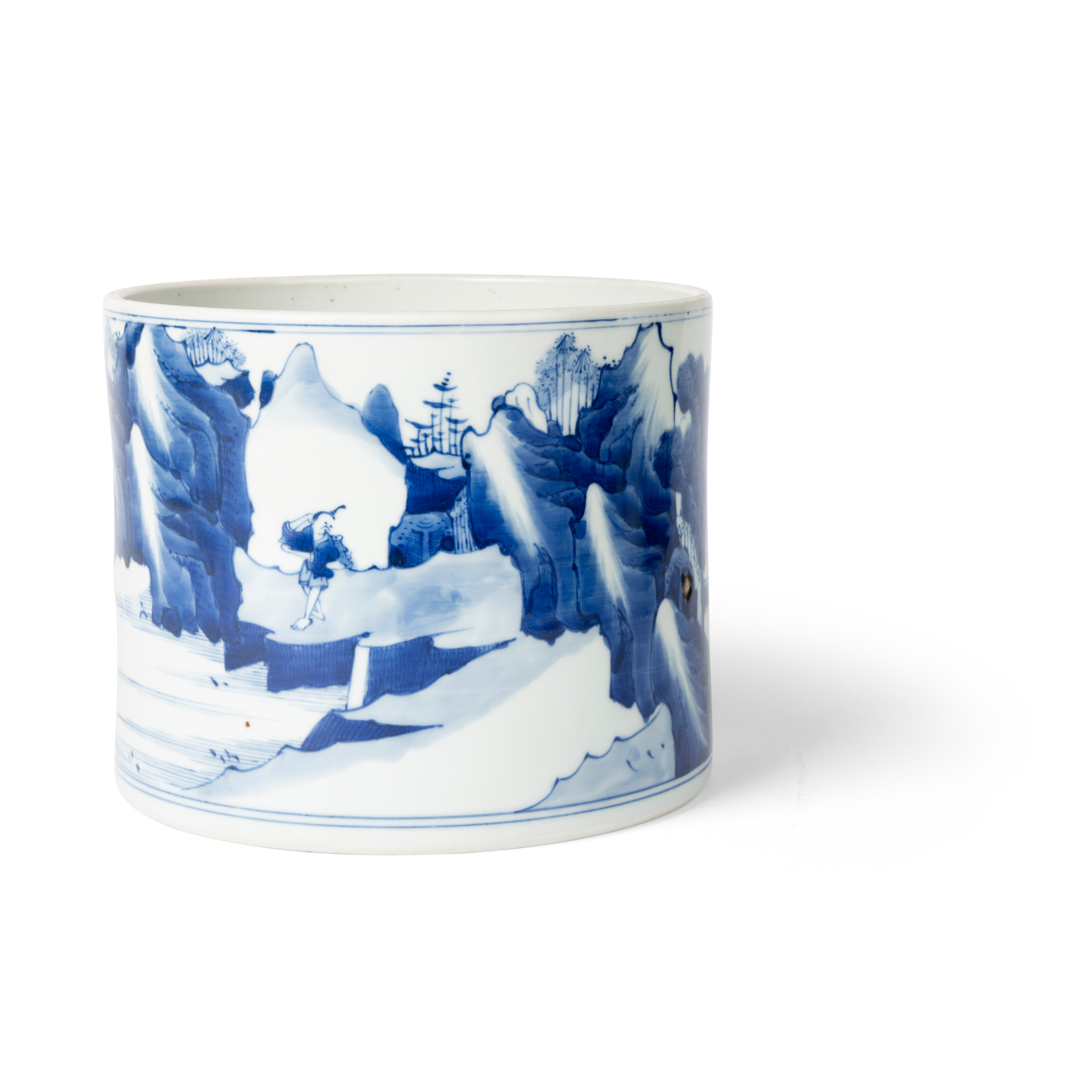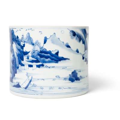CHINESE BLUE AND WHITE 'LANDSCAPE' BRUSH POT