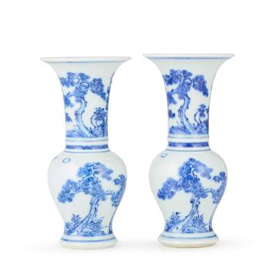 雍正款(其一) 青花歲寒三友紋小鳳尾尊(兩件)