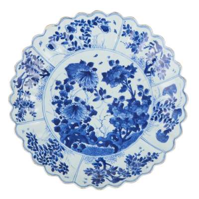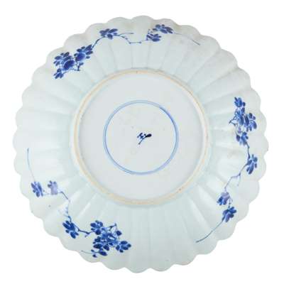 CHINESE BLUE AND WHITE CHRYSANTHEMUM-SHAPED DISH