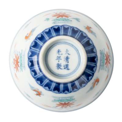 清 道光款及年代 鬥彩鴛鴦蓮池紋碗