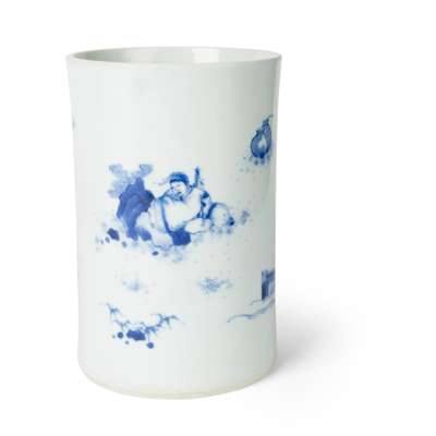 CHINESE BLUE AND WHITE 'DRUNKEN SCHOLAR' BRUSH POT