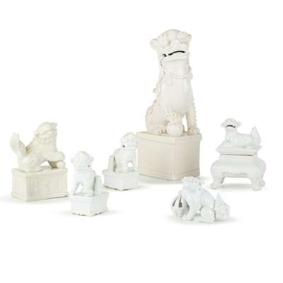 [PRIVATE ENGLISH COLLECTION, YORKSHIRE] GROUP OF SIX CHINESE DEHUA 'BUDDHIST LIONS' WARES