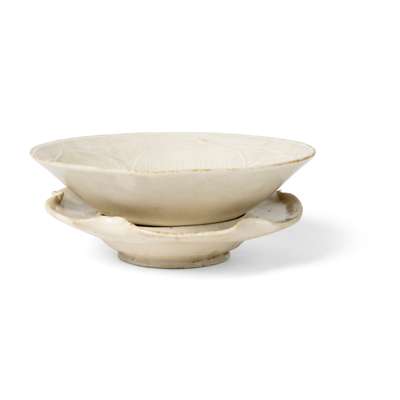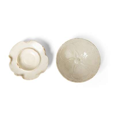 CHINESE DING-TYPE WHITE-GLAZED BOWL AND STAND