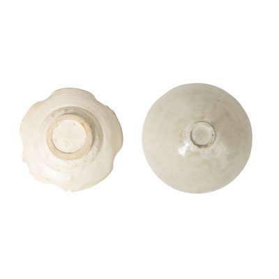 定窯式白釉模印花卉紋盞 連花口托(共兩件)