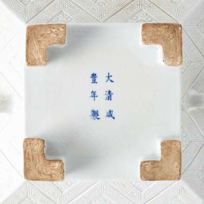 咸豐款或到代 仿元天曆盙側款 白釉仿古銅盙帶蓋