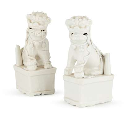 PAIR OF DEHUA 'BUDDHIST LION' INCENSE HOLDERS
