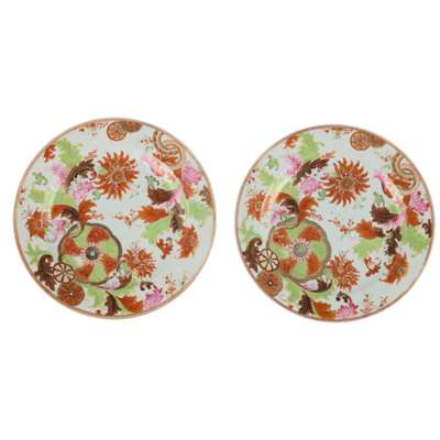 清乾隆 約1785年 粉彩菸葉紋盤(兩件)