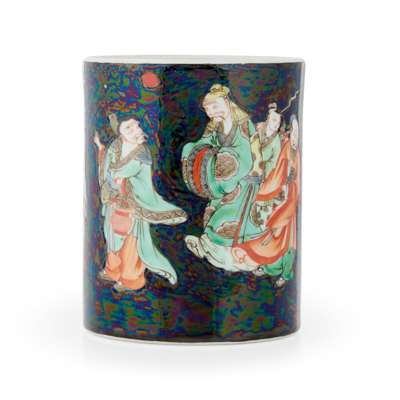 十九至二十世紀 黑地粉彩道教八仙人物筆筒