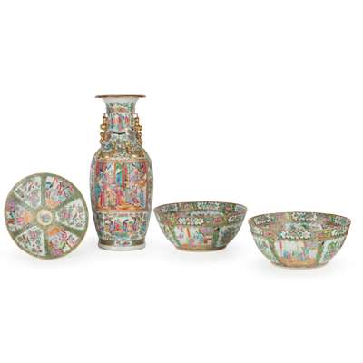 GROUP OF FOUR LARGE CANTON FAMILLE ROSE WARES