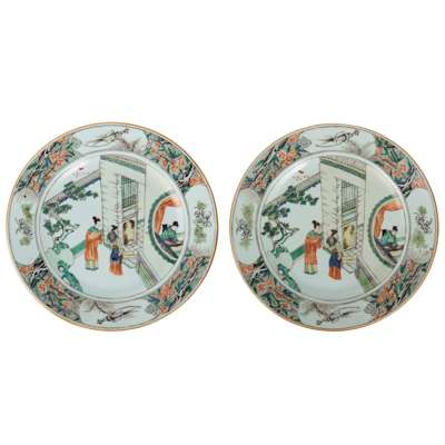 PAIR OF CHINESE WUCAI 'ROMANCE OF THE WESTERN CHAMBER' PLATES
