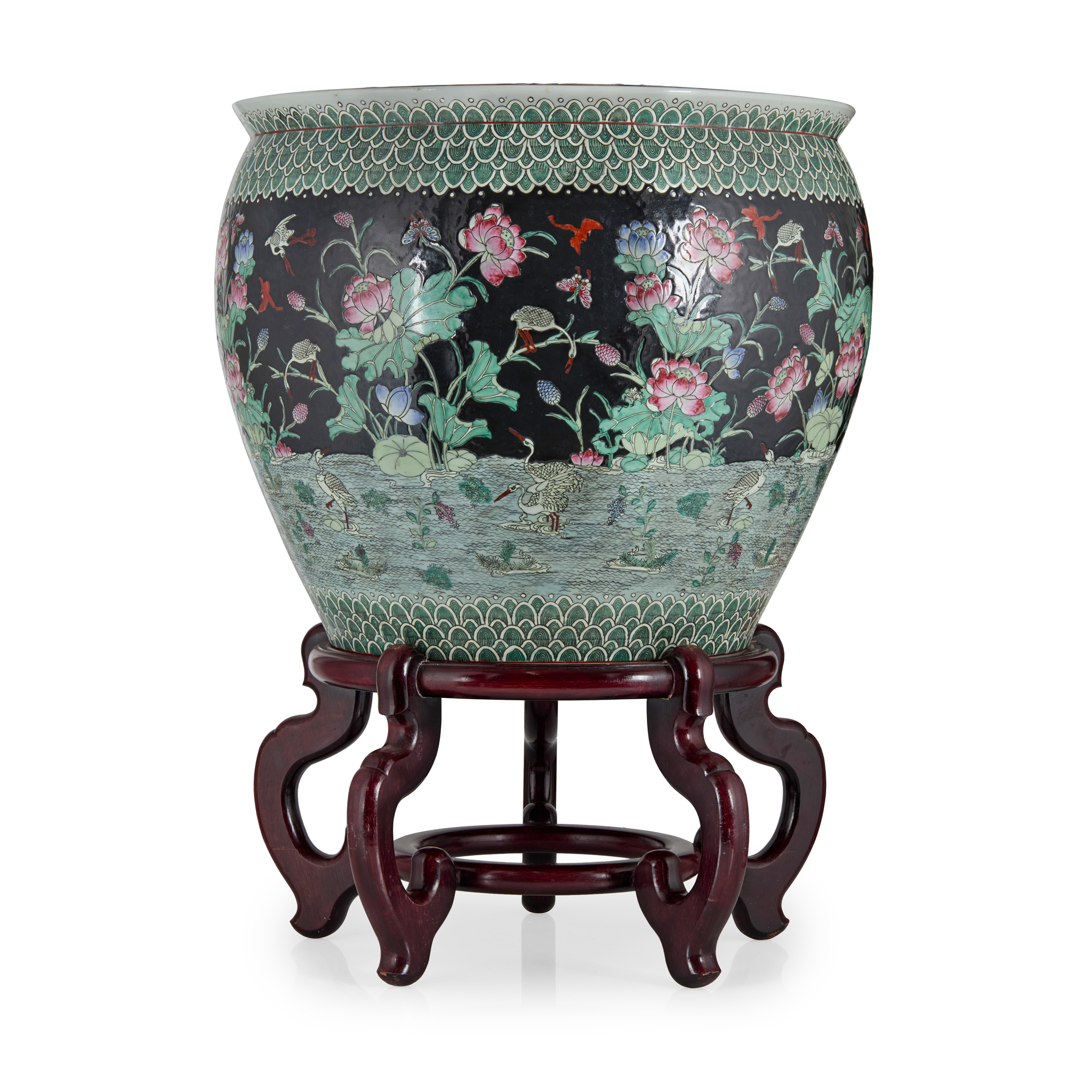 LARGE CHINESE FAMILLE NOIRE 'LOTUS POND' FISH BOWL