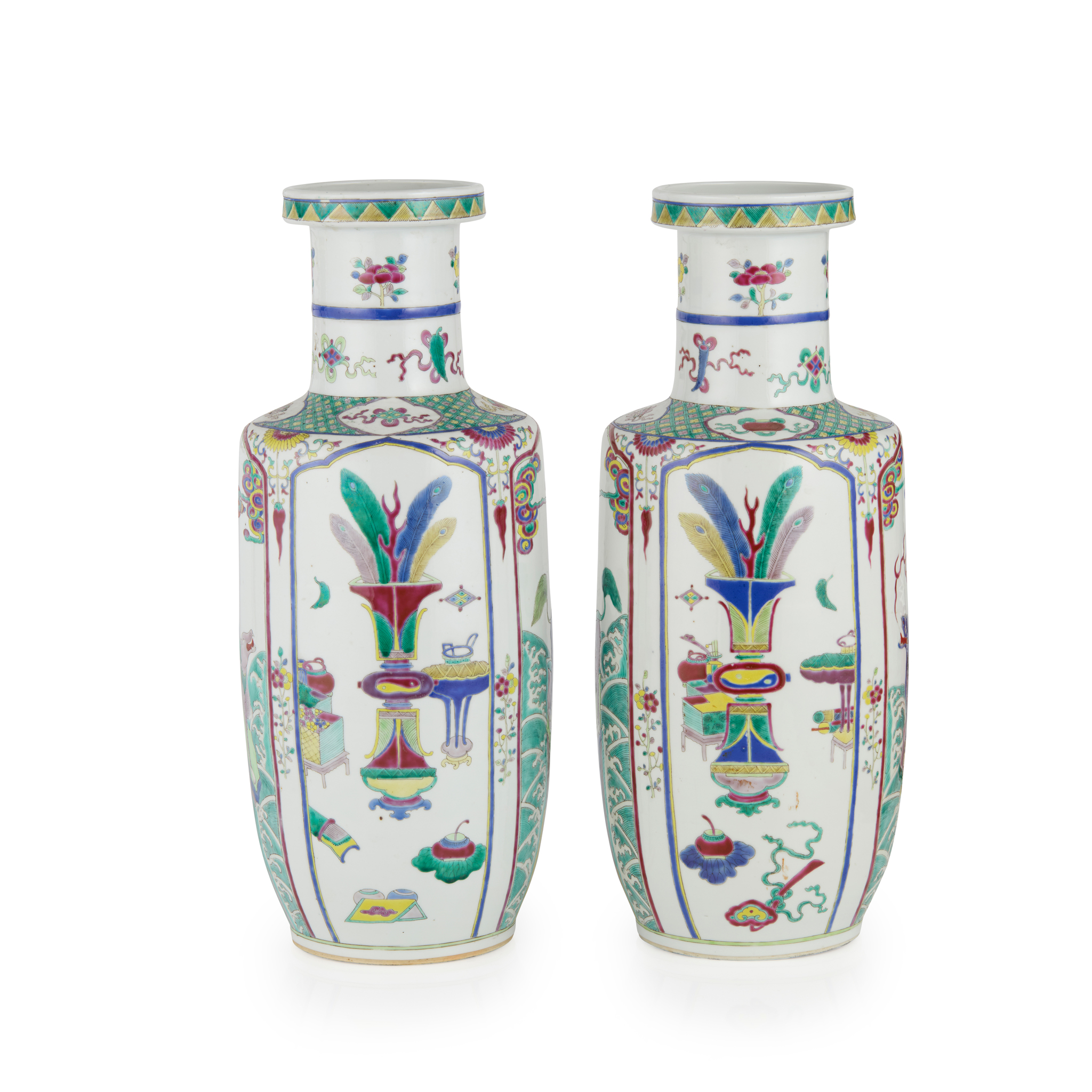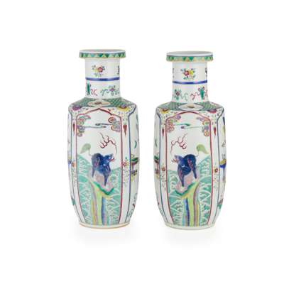 PAIR OF CHINESE WUCAI ROULEAU VASES