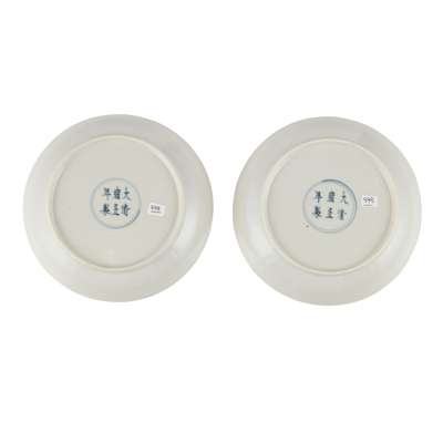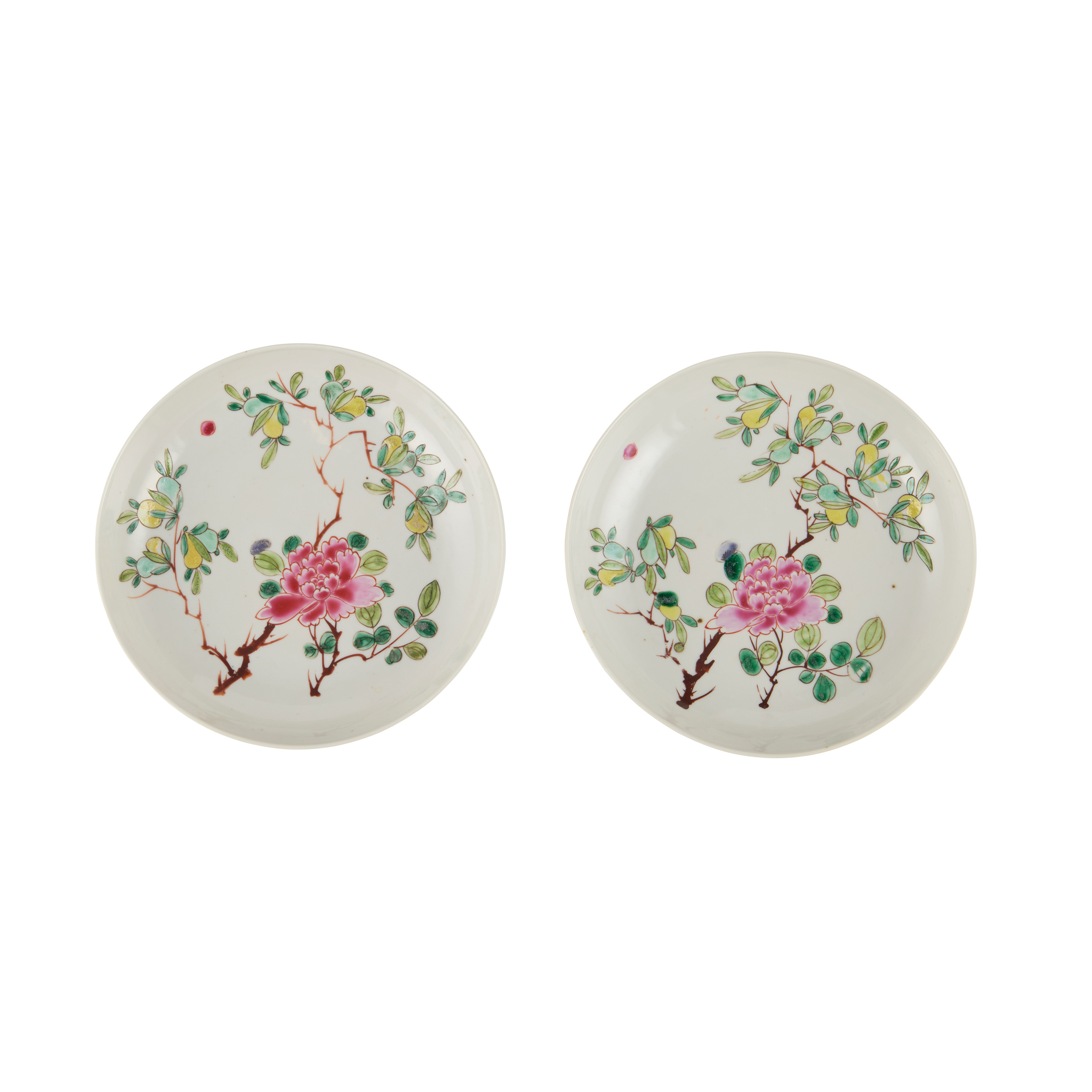 PAIR OF CHINESE FAMILLE ROSE 'PEONY' DISHES