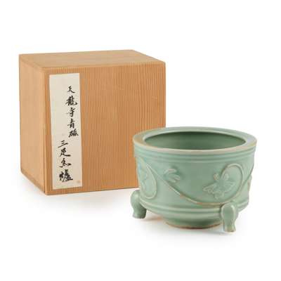 元或以後 青釉牡丹紋三足爐