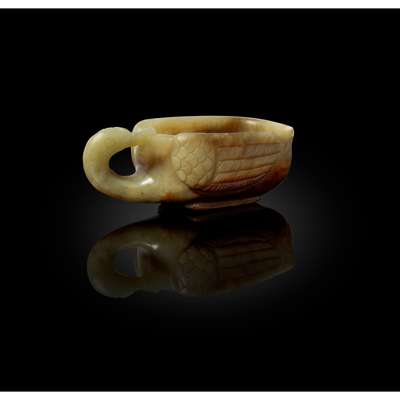 [PRIVATE ENGLISH COLLECTION, ENGLAND] CHINESE CELADON JADE WITH RUSSET INCLUSIONS 'GOOSE' CUP