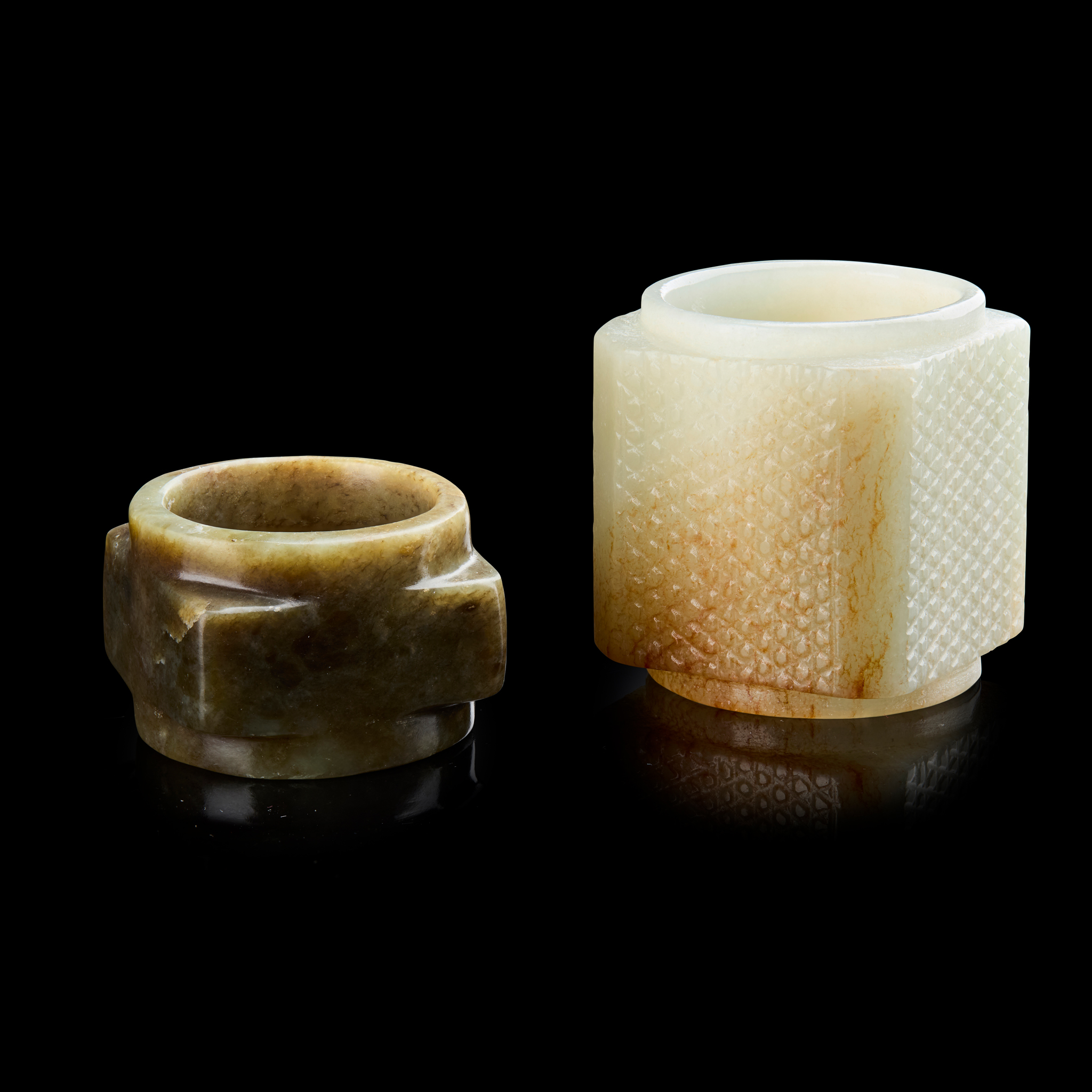 明至清 青玉雕玉琮 及 二十世紀 白玉雕玉琮(共兩件)